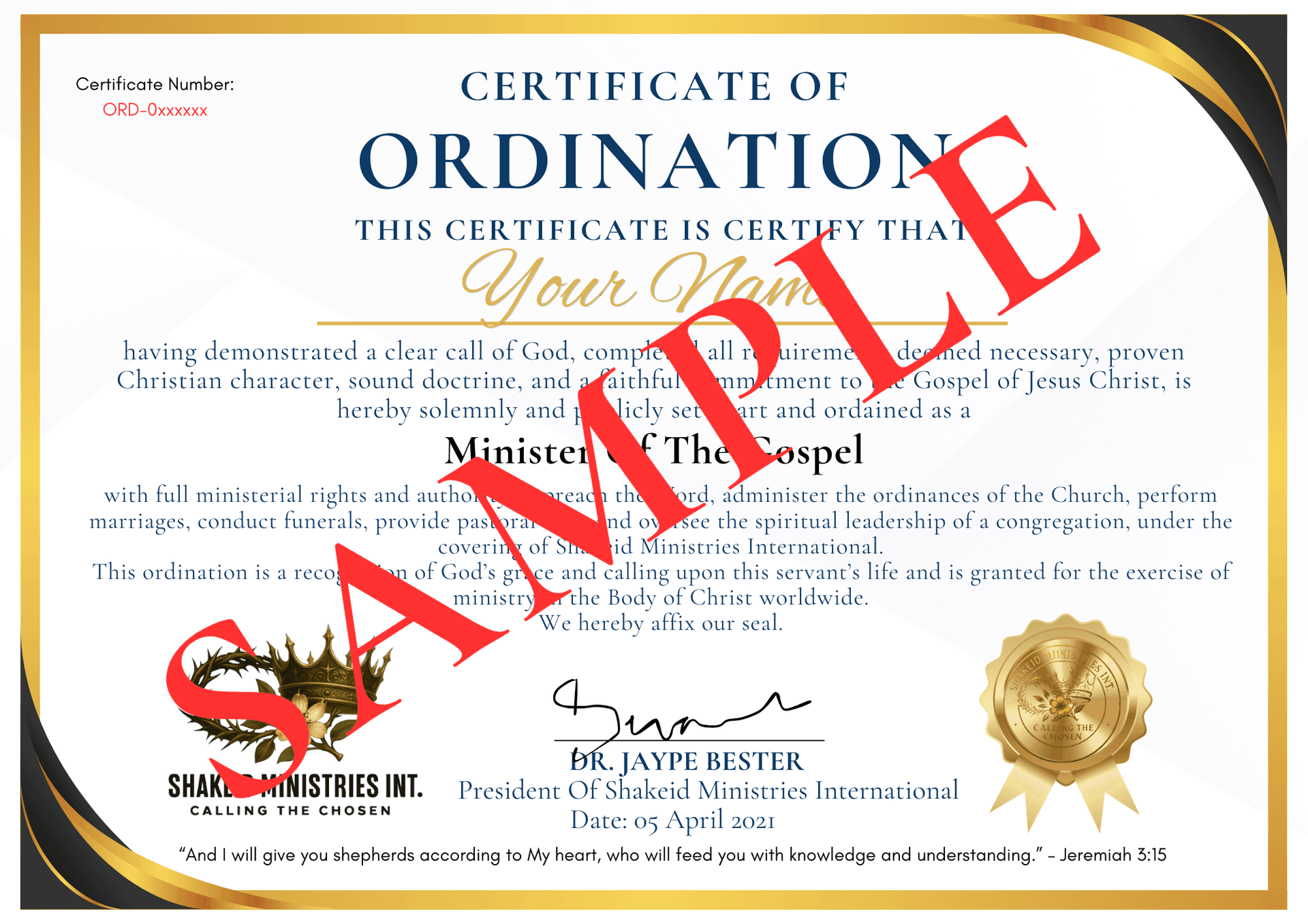 Shakeid Ministries International exists to affirm what God has already planted in you. Through our ordination process you’ll receive spiritual covering, a public commissioning of your calling, and connection to a network of pastors and leaders whose hearts burn for the Bride of Christ just like yours.